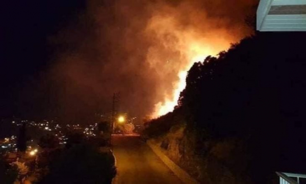 حريق هائل يطول منازل عدة شرقي لبنان!!...