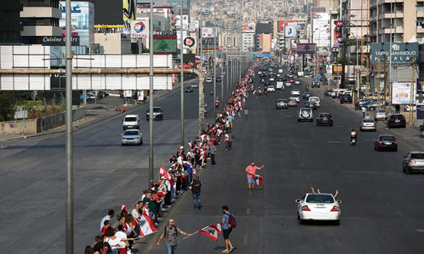 سلسلة بشرية عابرة للطوائف في لبنان توحد المحتجين من عكار شمالاً إلى صو...