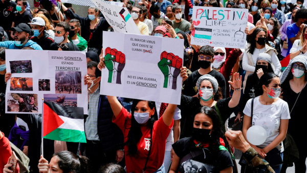 آلاف المتظاهرين يحتجون في مدريد على عمليات الجيش الإسرائيلي في قطاع غز...