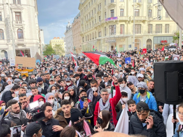 مظاهرة حاشدة وسط العاصمة النمساوية فينا اسنادعا ودعما للقدس!!...
