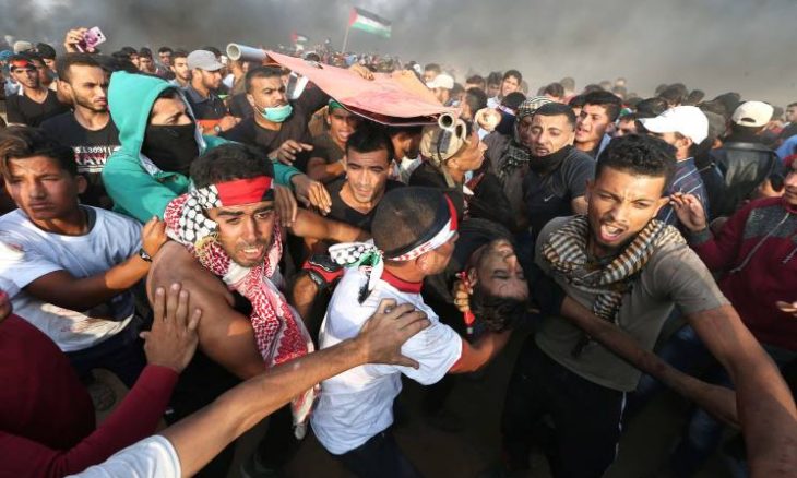 أصيب 130 فلسطينيا، مساء اليوم الجمعة، برصاص الجيش الإسرائيلي، خلال مشاركتهم في مسيرات “العودة” على الحدود الشرقية لقطاع غزة.وقالت وزارة الصحة الفلسطينية بغزة، في بيان، إن “130 فلسطينيا أصيبوا برصاص جيش الاحتلال الإسرائيلي، منهم 25 طفلا و4 من الطواقم الطبية والصحفية”، دون تقديم مزيد من الإيضاحات.وفي سياق متصل، أعلن الناطق باسم جيش الاحتلال الإسرائيلي، الوسخ أفيخاي أدرعي، أن طائرة عسكرية أغارت على مجموعة فلسطينية كانت تُطلق بالونات حارقة، باتجاه الأراضي الإسرائيلية، جنوبي القطاع، دون ذكر مزيد من التفاصيل.ولم تعلن وزارة الصحة بغزة، بشكل فوري عن وقوع إصابات جراء هذه الغارة.واحتشد الآلاف من الفلسطينيين، منذ عصر الجمعة، في مخيمات “العودة” المُقامة على الحدود الشرقية لقطاع غزة، للمشاركة بفعاليات “مسيرات العودة وكسر الحصار” السلمية.وأشعل المتظاهرون إطارات السيارات، ورشقوا القوات الإسرائيلية المتمركزة على حدود القطاع، بالحجارة.في المقابل، نشرت إسرائيل قوات كبيرة ودبابات على حدود غزة، وسط تقارير عن نية الجيش استخدام القوة المُفرطة لمواجهة المسيرات الفلسطينية المتوقعة اليوم.وبثت وسائل إعلام عبرية صورا لعشرات الدبابات وقوات كبيرة من الجيش الإسرائيلي على حدود القطاع.وقالت هيئة البث الإسرائيلية، اليوم، إنه “تم نشر الجيش بأعداد كبيرة في الجنوب” في إشارة إلى حدود غزة. وأضافت أنه “من المتوقع أن تتغير طبيعة رد الجيش الإسرائيلي على حوادث العنف على السياج مع انتشار القوات المدرعة والهندسية والمدفعية حول غزة”.وأمس الخميس، قالت مصادر إسرائيلية إن “المجلس الوزاري الإسرائيلي المصغر للشؤون الأمنية والسياسية (الكابينت) لم يصادق الأربعاء على تنفيذ عملية عسكرية ضد قطاع غزة، لكنه اعتمد قرار الرد بالقوة على المسيرات الفلسطينية وعلى إطلاق الطائرات الورقية والبالونات المحترقة”.وأطلقت الهيئة الوطنية العُليا لمسيرات العودة وكسر الحصار (مشكلة من الفصائل الفلسطينية)، على الجمعة الـ30 للتظاهرات السلمية، اسم “معا غزة تنتفض والضفة تلتحم”.وحذرت، في بيان، من “تمادي إسرائيل في استهداف المتظاهرين قرب الحدود الشرقية للقطاع”.ومنذ نهاية مارس/ آذار الماضي، ينظم آلاف الفلسطينيين مسيرات عند حدود قطاع غزة، للمطالبة بعودة اللاجئين الفلسطينيين إلى قراهم ومدنهم التي هجروا منها عام 1948، ورفع الحصار عن قطاع غزة.ويقمع الجيش الإسرائيلي تلك المسيرات السلمية بعنف، ما أسفر عن استشهاد عشرات الفلسطينيين وإصابة الآلاف بجروح مختلفة!!