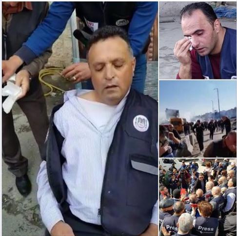 أصيب عدد من الصحافيين الفلسطينيين والأجانب بالاختناق الشديد، فيما أصيب نقيب الصحافيين الفلسطينيين ناصر أبو بكر بقنبلة غاز بشكل مباشر في الكتف، جراء مهاجمة جيش الاحتلال مسيرة سلمية للصحافيين بالقرب من حاجز قلنديا العسكري شمال القدس المحتلة.وهاجم جنود الاحتلال الصحافيين بقنابل الغاز، رغم ان المسيرة كانت على بعد اكثر من 150 مترا عن الحاجز، وأطلق الجنود القنابل بشكل مباشر لإلحاق الأذى بالمشاركين.ومن بين المصابين بالاختناق، أعضاء في الاتحاد الدولي للصحافيين، واتحاد الصحافيين العرب.وتأتي الفعالية دعما لحرية الصحافيين الفلسطينيين في الأراضي الفلسطينية، بالعمل والحركة والتغطية، دون أية عوائق إسرائيلية.وتقول نقابة الصحافيين الفلسطينيين إن هناك مضايقات كبيرة يتعرض لها الصحافيون في الضفة الغربية، تقيد حركتهم في التنقل لمتابعة الانتهاكات.ووثق المركز الفلسطيني للتنمية والحريات الإعلامية “مدى” (غير حكومي)، 833 اعتداءً إسرائيليا ضد الحريات الإعلامية في الضفة وغزة والقدس، منذ مطلع 2016، وحتى منتصف 2018.!!