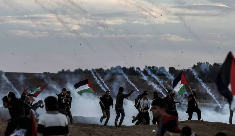 وأعلنت وزارة الصحة في قطاع غزة، اليوم الجمعة، عن إصابة أكثر من 40 مواطنًا شرق القطاع، بينهم مسعف، ومصور صحفي شرق البريج. واندلعت بعد عصر اليوم، مواجهات بين الشبان وجنود الاحتلال في مسيرات العودة وكسر الحصار المستمرة للجمعة الـ39، على طول الحدود الشرقية لقطاع غزة.وقال جيش الاحتلال إنه تم إلقاء عدة عبوات متفجرة عند حدود القطاع دون إصابات، مشيرًا إلى وقوع محاولتي تسلل. وأطلقت الهيئة الوطنية العليا لمسيرة العودة على فعاليات الجمعة المقبلة، اسم: "لن نساوم على حقنا في العيش بكرامة"، وذلك بعد انتهاء فعاليّات جمعة اليوم، والتي حملت اسم "الوفاء لأبطال المقاومة".وطالبت الهيئة الجماهير الفلسطينية بـ "تصعيد كل أشكال المقاومة ضد الاحتلال، والتصدي للهجمة الصهيونية المتواصلة على الضفة، وتحويل أماكن وجود الاحتلال والمستوطنين، إلى ساحات اشتباك مفتوحة، كي يبقى في حالة استنزاف دائم".وشددت الهيئة على أن "مسيرات العودة مستمرة ومتواصلة بطابعها الشعبي، وهي اليوم أقوى وأشد ولن تتوقف إلا بتحقيق أهدافها".وأدت الاشتباكات بين الفلسطينيين والقوات الإسرائيلية خلال مسيرات العودة منذ انطلاقها في الثلاثين من آذار/مارس الماضي إلى استشهاد 239 فلسطينيًا، بينهم 44 طفلا و5 سيدات، وجرح 25700!!