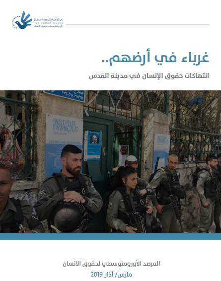 جنيف- اصدر المرصد الأورومتوسطي لحقوق الإنسان اليوم تقريرًا يوثق الانتهاكات الإسرائيلية لحقوق الإنسان بحق السكان الفلسطينيين في مدينة القدس خلال شهر آذار/مارس 2019.انتهاكات إسرائيل في القدس زادت كماً وكيفاً بعد قرار الرئيس الأميركي دونالد ترمب في كانون أول/ديسمبر عام 2017 نقل سفارة الولايات المتحدة إلى المدينة المقدسة باعتبارها العاصمة الموحدة لدولة إسرائيل وأوضح المرصد الدولي الحقوقي – مقره جنيف - في تقريره الذي حمل عنوان (غرباء في أرضهم... انتهاكات حقوق الإنسان في مدينة القدس) أن سلطات الاحتلال الإسرائيلي تستمر على نحو ممنهج ومتعمد بتنفيذ سياساتها التصعيدية الخطيرة وممارساتها غير القانونية والتي تمثل انتهاكات صارخة لحقوق الإنسان ضد الفلسطينيين في مدينة القدس المحتلة.وقال المرصد إن انتهاكات إسرائيل في القدس زادت كماً وكيفاً بعد قرار الرئيس الأميركي دونالد ترمب في كانون أول/ديسمبر عام 2017 نقل سفارة الولايات المتحدة إلى المدينة المقدسة باعتبارها العاصمة الموحدة لدولة إسرائيل.وذكر أن قرار ترمب المذكور "أعطى الضوء الأخضر للسلطات الإسرائيلية للاستمرار والتصعيد في انتهاكاتها الصارخة بحق الفلسطينيين عامةً وأهل مدينة القدس المحتلة بشكل أكبر، في محاولة لطمس الهوية العربية الإسلامية والمسيحية للمدينة المقدسة، وفرض التغيير باستخدام كل الطرق غير القانونية".ووثق تقرير الأورومتوسطي سلسلة من انتهاكات إسرائيل لحقوق الإنسان في القدس تشمل الاعتقالات التعسفية وسياسة دهم المنازل للاعتقال وتقييد الحريات وحظر اقامة فعاليات فلسطينية إضافة إلى الإبعاد العسكري وأوامر منع السفر، فضلًا عن الاستيطان والتهويد والهدم ومنع تراخيص البناء.ورصد التقرير انتهاكات جسيمة ترتكبها السلطات الإسرائيلية بحق السكان الفلسطينيين في القدس بما في ذلك إجراءات تتبعها أثناء وبعد اعتقالهم كتفتيش منازلهم دون وجود مذكرة قضائية، وفرض غرامات مالية مرتفعة.كما يوثق التقرير بالتعليقات القانونية والموضوعية السياسات الخطيرة التي تمارسها سلطات الاحتلال الإسرائيلي، علما أن التقرير تم إعداده بالاعتماد على مراسلي المرصد الأورومتوسطي في المدينة بشكل أساسي بالإضافة إلى التواصل مع الناشطين الحقوقيين فيها.وأكد التقرير أن ما يقوم به الاحتلال الإسرائيلي وبلدية القدس التابعة له هو انتهاك صارخ لحقوق المقدسيين في العيش الكريم، وتمييزاً عنصرياً بحقهم، إذ أنّ بلدية الاحتلال لم تصدر حتى الآن أي مخطط تنظيمي عام من أجل تنظيم موضوع البناء في القدس الشرقية بصورةٍ قانونية، ليسمح للمقدسيين بإصدار رخص البناء وفقاً له.ودعا المرصد الأورومتوسطي لحقوق الإنسان في ختام تقريره المجتمع الدولي إلى ضرورة التحرك الجدّي والفعّال لوقف السياسات الإسرائيلية المخالفة للقوانين الدولية، وتقديم الحماية للفلسطينيين في مدينة القدس ضد ممارسات تهجيرهم والاعتداء عليهم واعتقالهم التعسفي، وصون حرياتهم وبخاصة الحريات الدينية.وحثّ المؤسسات الحقوقية على تسليط الضوء على خطورة الإجراءات التي تنتهجها سلطات الاحتلال فيما يتعلق بسياسة الهدم المفاجئ دون سابق إنذار، بما فيها من إهدار لمقتنيات تلك الأسر وممتلكاتهم وهدم البيوت عليها، الأمر الذي يظهر الجانب الترهيبي في هذه الإجراءات!!