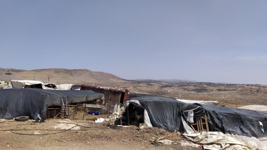 في الجهة الشمالية الشرقية لقرية المغير، شرق رام الله، تقع خربة جبعيت التي يعيش سكانها من مربي الأغنام من أهالي المغير وغيرهم داخل خيم، متحدين تغول الاستيطان هناك على أراضيهم، برغم مضايقات وممارسات الاحتلال المتواصلة لهم، وسط خشيةٍ من ضم أجزاء كبيرة من تلك الأراضي لدولة الاحتلال ضمن خطط الضم الإسرائيلية المتوقعة.بالنسبة للشاب عمران أبو عليا (29 عاماً) من خربة جبعيت، فإن الخربة أرضه ووطنه التي لا يمكن له في يوم من الأيام أن يتخلى عنها، وهي الخربة الصامدة في وجه التغول الاستيطاني ومحاولات الضم التي تنوي حكومة الاحتلال تنفيذها مستقبلاً.يقول عمران أبو عليا لـ"القدس" دوت كوم: "إن جبعيت هي بلدي وأرضي ووطني، وُلدت عام 1991 في خيمة، وعشت طوال حياتي فيها، أعرف سهولها وجبالها ووديانها، وآبار المياه فيها، وكل شيء، فهي جزءٌ من حياتي".تواتر حب "جبعيت" في قلب عمران وهو يسمع عنها من والديه وأجداده، فجبعيت ليست خربة فقط، بل هي قرية فلسطينية فيها آثار إسلامية ومقابر مهدومة، وما زالت تُرَى إلى الآن، وعمران يعرف قصصها من أجداده.أما سليمان زواهرة من تجمع عين الرشاش في خربة "جبعيت"، وسميت بهذا الاسم لوجود عين ماء هناك اسمها عين الرشاش، وهو كما يؤكد لـ"القدس" دوت كوم، فلن يتخلى عن الخربة وأراضيها، ويقول: "قد يستطيع الاحتلال إخراجنا بالقوة من الخربة، لكننا لن نخرج مهما فعل الاحتلال من ممارسات".وتشهد المغير مضايقات شبه يومية من الاحتلال والمستوطنين، خاصةً في خربة جبعيت التي يسكن فيها نحو 100 نسمة، وجميعهم لا يسمح لهم بإقامة حمام واحد لهم! ويقضون حاجتهم بالطريقة التقليدية وراء الحجارة الكبيرة.يقول عمران أبو عليا: "لدينا احتياجاتنا في الخربة، كالإنارة الضرورية، خاصةً للأطفال، في ظل اعتداءات ذلك المستوطن علينا، فيما يوجد لدينا نقص كبير جداً بالمياه، ومنعنا من استخدام آبار المياه، أتمنى أن تتم مساعدتنا بتزويدنا بالكهرباء والماء".ووفق عمران، "فإن ممارسات الاحتلال لا تتوقف، قبل أكثر من أُسبوعين أقمنا خيمة قرب خيامنا لاستقبال البعثات الدبلوماسية الأوروبية، وبعدها مباشرة هدمنا الخيمة لأن جيش الاحتلال يمنعنا، وبالفعل وبعد دقائق من مغادرة البعثات اقتحمت قوات الاحتلال الخربة، لأجل ذلك، وما تحسبنا له حدث، وهناك الكثير من الممارسات، حتى الحمّام يمنع علينا إقامته".من جانبه، يقول رئيس مجلس قروي المغير أمين أبو عليا: "إن الخربة مقام فيها خيام فقط، ويمنع الاحتلال شق طرق زراعية فيها أو تأهيل الأساسيات للحياة في تلك الخيام كالبركسات الثابتة أو الحمامات المتنقلة أو الكهرباء، فكل تلك الخدمات معدومة".ويؤكد رئيس مجلس قروي المغير: "لقد حاولنا تركيب حمام واحد أكثر من مرة للأهالي، لكنّ جيش الاحتلال كان يهدمه، بل وصادر أيضاً بعض الخيام والمولدات الكهربائية، خربة جبعيت تعاني من عدم توفر شبكة كهرباء أو وجود صرف صحي أو دورات مياه أو حمام متنقل، ويضطرون لاستخدام الطريقة التقليدية بقضاء حاجتهم خلف الحجارة!".في خربة جبعيت التي أُقيمت على أنقاض قرية فلسطينية تاريخية تواجه اليوم مخططات الاحتلال الاستيطانية، حيث يوضح رئيس مجلس قروي المغير أمين أبو عليا أنّ خربة جبعيت أُقيمت على بقايا آثار قرية فلسطينية كانت آهلةً بالسكان عام 1904، وهجر أهلها نتيجة الخلافات الداخلية بما تعرف بمعارك "قيس ويمن" مع بداية الحكم العثماني، وبحسب الروايات فإن أهالي جبعيت توزعوا على القرى الفلسطينية الأُخرى وفي الأردن.ووفق أبو عليا، فإن خربة جبعيت هي جزءٌ من أراضي قرية المغير البالغة مساحتها 40 ألف دونم، منها 12 ألف دونم تشكل مساحة خربة جبعيت التي تقع شمال شرق المغير، والخربة الآن تقع في تجمعين، هما خليط من المزارعين ومربي المواشي من قرية المغير، وعرب الزواهرة الذين يقيمون في الخربة منذ 40 عاماً، فيما يبلغ عدد سكان الخربة 100 نسمة، 70 شخصاً منهم من عرب الزواهرة الموجودين في منطقتين عين الرشاش والزواهرة.ويرى أبو عليا أنّ خربة جبعيت تقع 