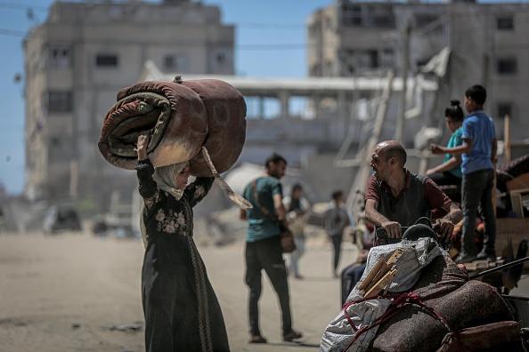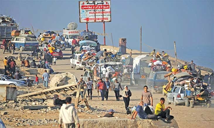 غزة..فلسطين : موجة نزوح للفلسطينيين من مدينة غزة في ظل قصف الاحتلال ا...