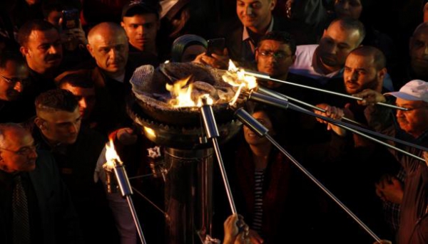 نابلس : الفلسطينيون يوقدون شعلة الحرية للأسرى في مدينة نابلس!!...