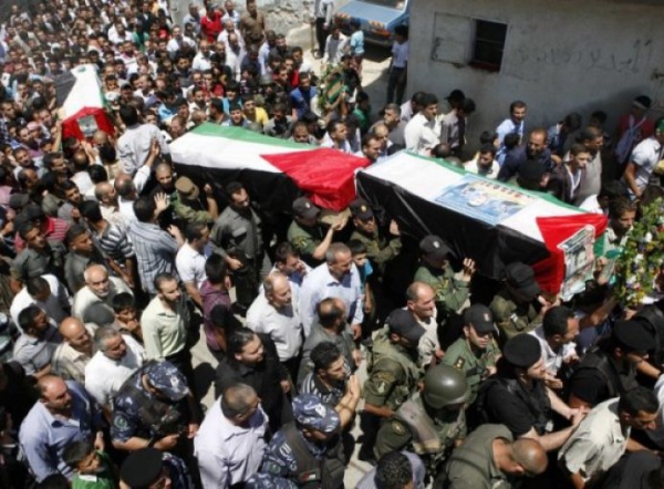 فلسطين :آلاف الفلسطينيين يشيّعون جثامين ثلاثة شهداء في مخيم قلنديا!!...