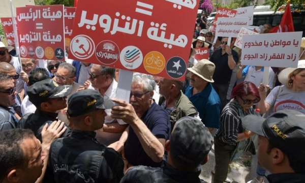 تونس..تونس : صدامات في تونس بين الشرطة ومحتجّين على استفتاء دستوري!!...