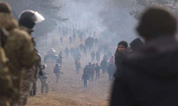 وارسو..بولندا :حشود مسلحة على حدود بولندا لمنع دخول المهاجرين… وبيلارو...