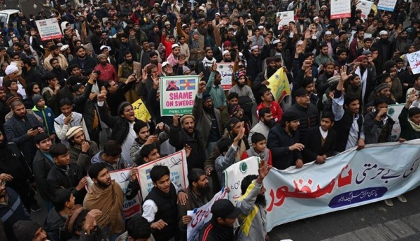 لاهور..باكستان : تظاهرات في باكستان احتجاجا على تدنيس القرآن في السويد...